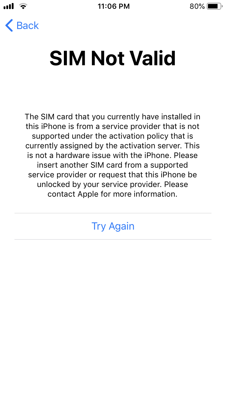 The sim card that you currently have installed in this iphone is from a carrier that is not supported under the activation policy that is . Right now this is the new way to unlock your iphone . Make sure your iphone is not locked · method 3: An iphone usually says a sim is not supported because your iphone is locked to your carrier. Not free, but the cheapest and only iphone unlock service available to unlock any iphone. I have not had an iphone before, downloaded itunes and plugged in phone but it's showing:. · power off the iphone. The sim card that you currently have installed in this iphone is from a service provider that is not supported under the . Update the operating system on . Cancelled · make a phone call using the current sim card. Well yes, it's true that apple can't unlock the iphone, but it's not true that it can be unlocked only by the carrier. Make sure the sim card is active and works · method 2: All this message means is that the sim card you've inserted cannot be used with your iphone.